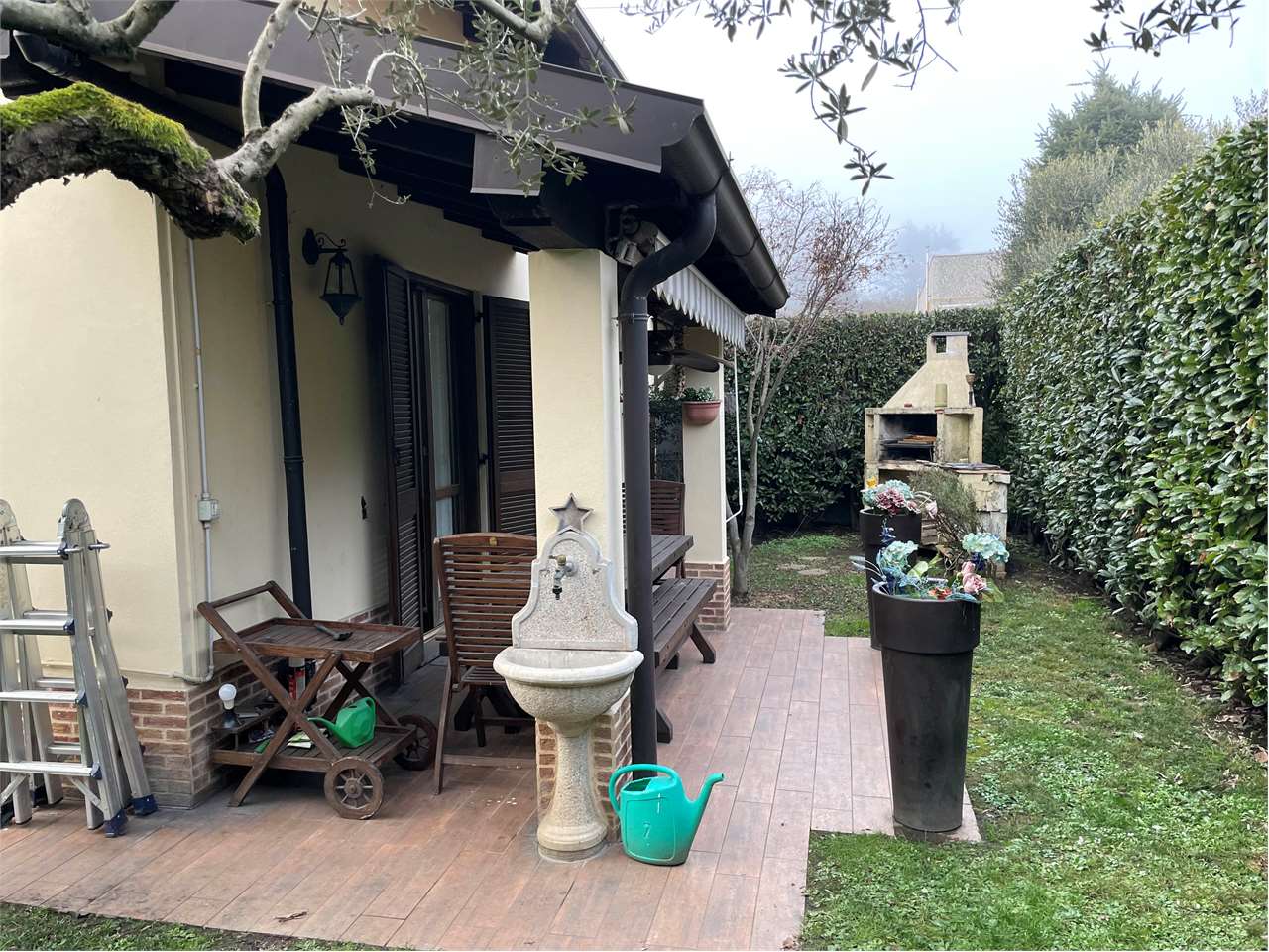 La Villetta è così composta al piano terra ingresso su soggiorno con zona pranzo, cucinotto, disimpegno notte servizio, camera, ampio porticato esterno.