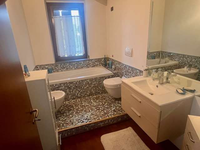 L’immobile è così composto, al piano primo ingresso su soggiorno, cucina abitabile, disimpegno, servizio, al piano notte due camere disimpegno notte, servizio, completa l’immobile il piano interrato con box doppio, lavanderia, locale tecnico.