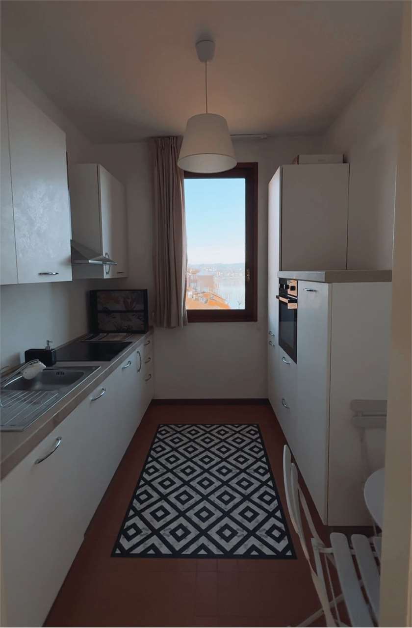 Centralissimo, affittasi appartamento bilocale completamente arredato con esclusiva vista fiume, situato al 4° piano in ottimo contesto condominiale, così composto, ingresso su soggiorno, cucinotto, disimpegno notte, bagno, camera matrimoniale.