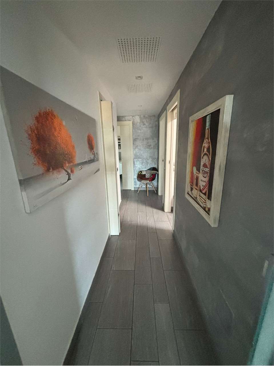 ingresso su ampio salone con cucina a vista, disimpegno notte, tre camere, due bagni, lavanderia, ripostiglio.