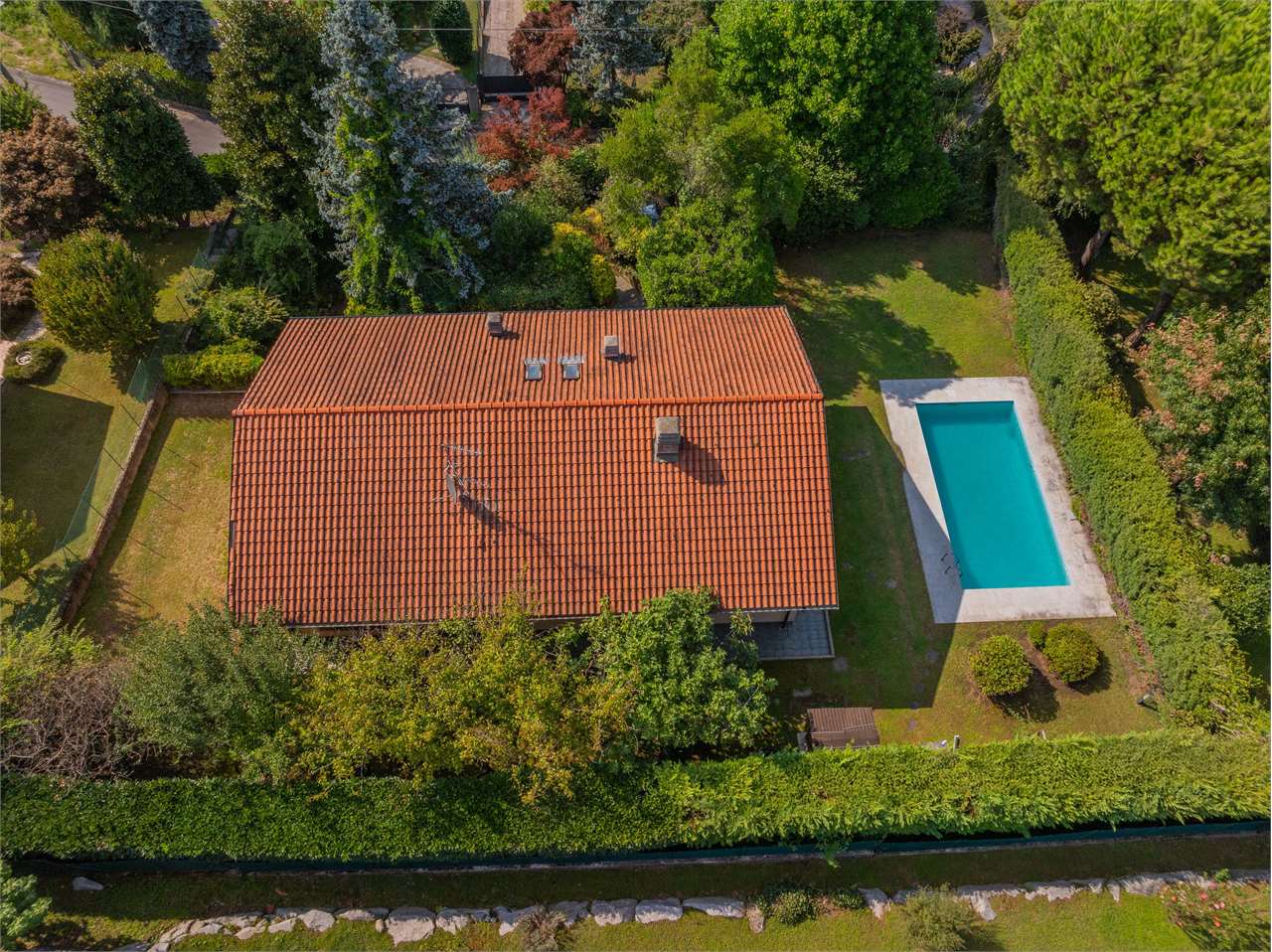 La Villa di ampia metratura è in perfette condizioni, giardino ottimamente piantumato con gradevole vista e ottima privacy.